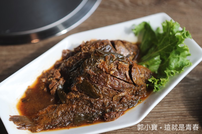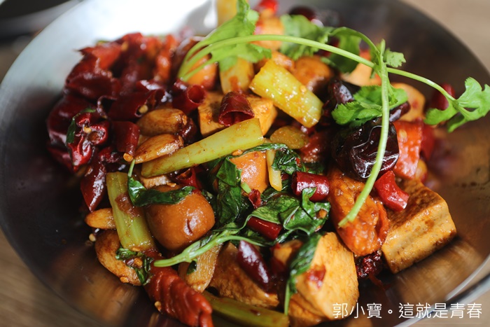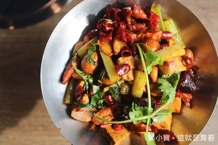 | 我超推薦這一道,大腸也是我個人超愛的內臟,我對內臟類料理一整個就是沒有抗拒的能力,看到臭腸阿干鍋就立馬點下去了,有點像是干鍋的做法,肥腸的油脂相當豐富,辣度也夠,搭配方塊豆干吸飽了滿滿的臘味干鍋,超級涮嘴! |