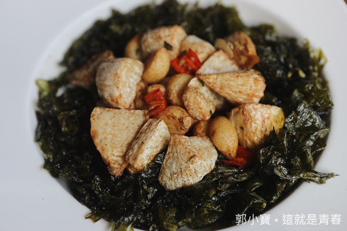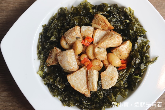 | 第一次看到這種菜色,除了鮮筍以外還有蒜頭,蒜頭提味相當的足,鮮筍吃起來的口感非常特別,也滿值得點來試試看的,顛覆了我對筍子的印象,搭配下面海苔?層次非常豐富,鮮筍原來也可以那麼另類。 |