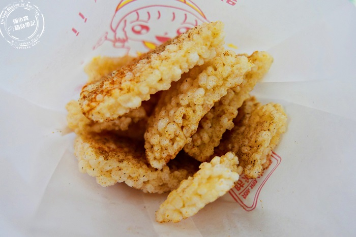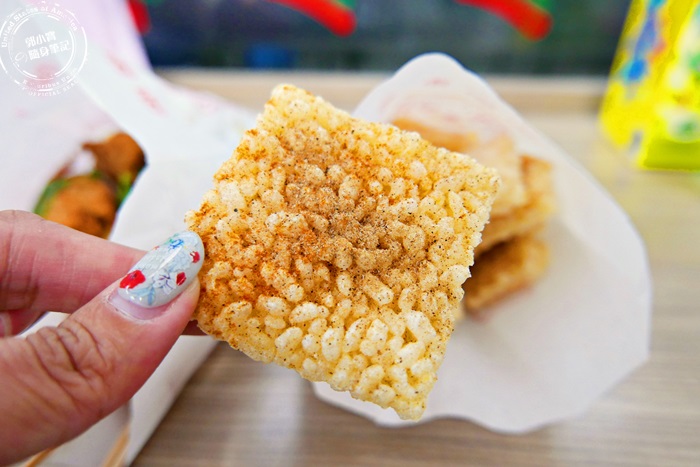 | 鍋粑老闆娘說就是像米香一樣,還真的蠻類似的,只是這炸過的口感比較硬脆酥香,感受到原本米的香甜味,撒上胡椒、辣椒粉,味道就很鹹香,像餅乾一樣的脆度,很適合看電影的時候吃,而且份量也蠻多的,如果覺得太硬還可以把它放進去滷味裡頭吸收湯汁,不同的風味,大家可以嘗試看看。 |