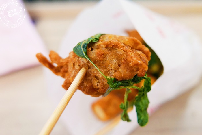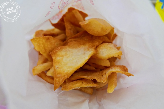 最特別的就是這個,鹹酥雞攤沒見過的,艾編也是因為朋友的大力推薦,就點來試吃看看,這乳酪本來的形狀是有點像麻花捲的樣子,只是比較粗,吃起來的口感有點像是在吃油條,口感軟脆的油條,孔洞沒有油條那麼大,味道真的是很濃的乳酪味,一種臭到發香的味道,愛吃乳酪的會很愛,艾編就蠻喜歡的,不過小小一口還蠻鹹的,跟滷味搭配著吃就還蠻好吃的。