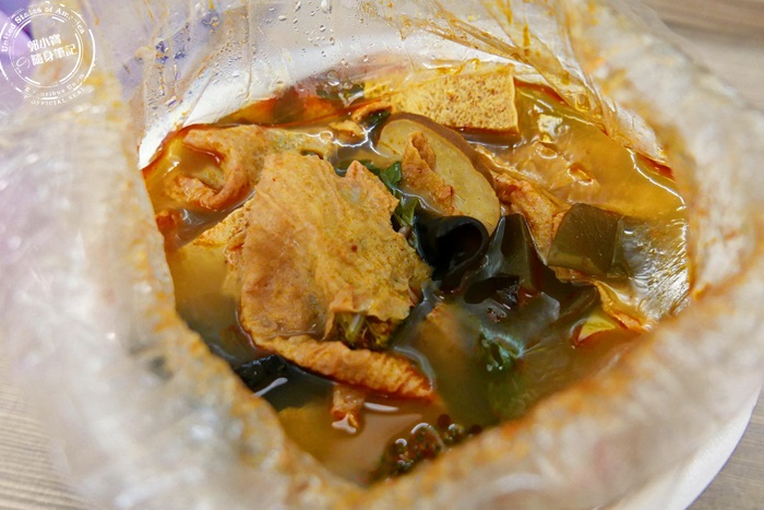 | 他們家的湯頭真的很優秀,跟一般常見的滷味不一樣,是像湯一樣的,不是濃稠濃郁的深色滷汁,倒是像高湯,艾編選的是泰式酸辣口味,其實沒有很酸很辣,是很和諧的味道,有點像是火鍋的湯頭一樣,也不會太重口味,可以直接單喝,外帶的話給一大包,高湯的部分滿滿的,像極了打包小火鍋,常來吃的友人就是會外帶回家,然後再自己加料下去煮,就真的很像煮火鍋,CP值真的超級高,吃火鍋還不用花大錢,吃的好滿足呀! |
