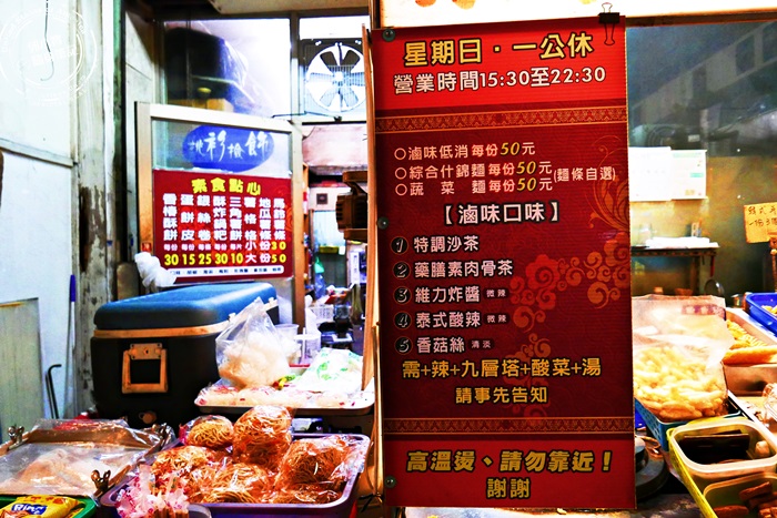 | 艾編的好朋友因為從小就吃素的關係,在高雄可是有不少的口袋名單,不過一定都是素食,這家小吃攤是她的愛店之一,我們相約要來個滷味聚會,沒想到要來這家踩踏,還蠻坎坷的,每次約好了時間要來,不是剛好公休,就是店家剛好放長假,終於終於~最終有約成功,喜極而泣呀!位於大社中山路上,小吃美食多到數不清,雖然這滷味攤位沒有明顯大招牌,外表看起來也走比較低調路線,但仍然有很多的忠實顧客上門,艾編第一次來還騎過頭沒發現,大家要來的話,記得眼睛睜亮點。 |