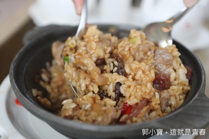 | 我個人還是比較喜歡辣味排骨飯,燒蠟飯是我最愛的煲仔飯,一上桌那香氣真的會逼死人,雲水坊的煲仔飯比較濕潤一點,但是我覺得還滿符合台灣人的口味,屬於醬香多一點的那種,鹹甜滋味非常迷人。 |