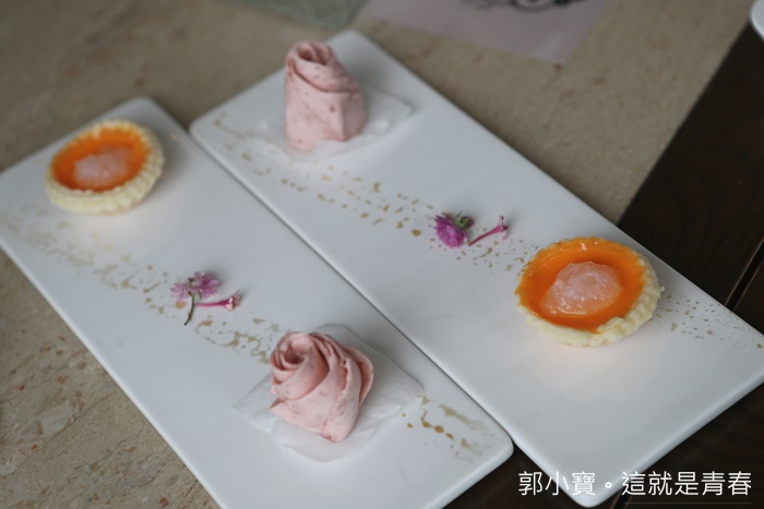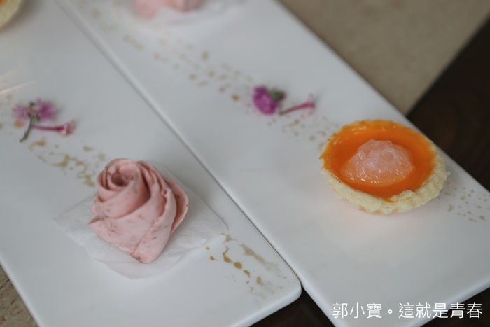 | 非常美的飯後甜點,蛋塔中間放了燕窩非常吸睛也很奢華,玫瑰花看起來也極為費工,口味上也都極有水準,蛋塔不會太膩,燕窩的口感讓整上更加平衡。 |