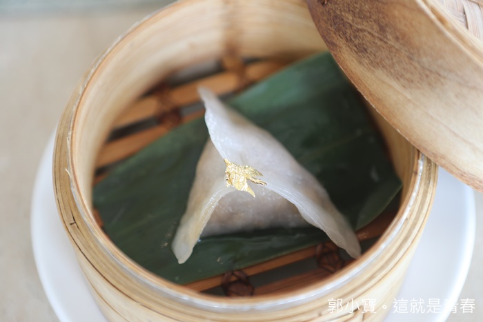 | 松露美人粿加上一片金箔顯得貴氣許多,皮嫩彈牙口感非常的好,入口飽滿的汁液確實讓人滿足,那淡淡淺淺的清香滋味真的非常不賴。 |