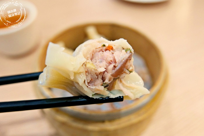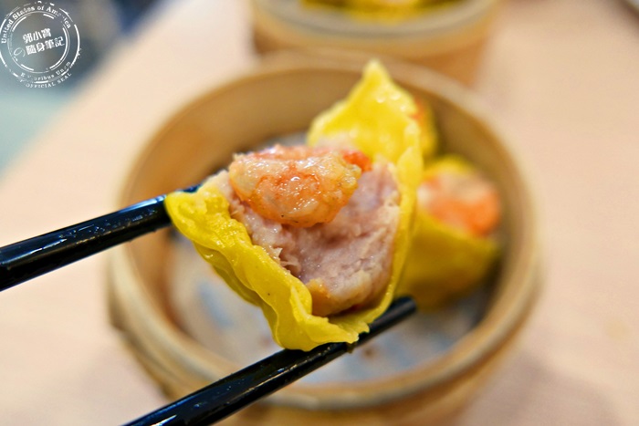 | 每個燒賣都有一隻鮮蝦,外衣的部分非常的柔軟香氣足,口感挺好的,也蠻有味道的,裡頭的內餡柔軟香甜,肉質新鮮彈牙,蝦子吃整隻的超級Q甜脆,這裡的燒賣真的很優秀,端上桌是秒殺級的美味港點。 |
