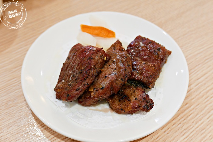 | 這牛小排CP值非常高,幾乎每桌必點,很有厚度的牛小排,烤的熟度剛剛好,軟嫩多汁,非常好咀嚼,香氣十足,加點胡椒增加胡椒香氣,大口吃肉就是舒服,吃的超滿足的,這牛小排很推薦唷! |