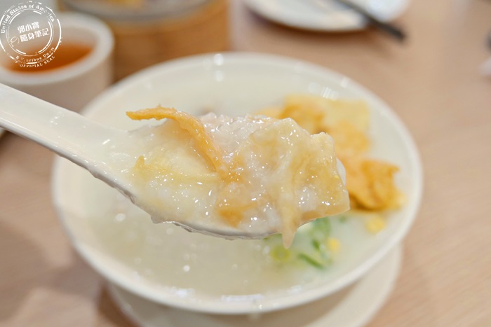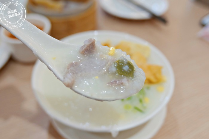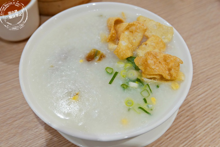 | 看不到米粒的粥,真的很道地,廣東粥都是長這個樣子的,他們家的粥純白色澤,肉絲及皮蛋隨手撈都有,而且不馬虎的,很有味道,輕輕淡淡的,香氣十足而且肉質新鮮柔軟,粥喝起來鮮美滑順,有喝濃湯的感覺,挺舒服的,加點蔥花下去點綴,味道更棒。 |