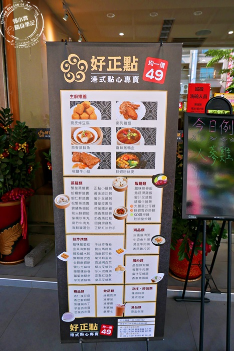 | 不用入內就可以看到這菜單寫滿滿的一大張,路過的行人發現這一家再看看菜單其實都會進去嚐鮮的,因為他們家除了照片吸引人,港點的種類更是多到不行,完全就是被均一價$49吸進來的,門面給人的感覺相當的不錯。 |