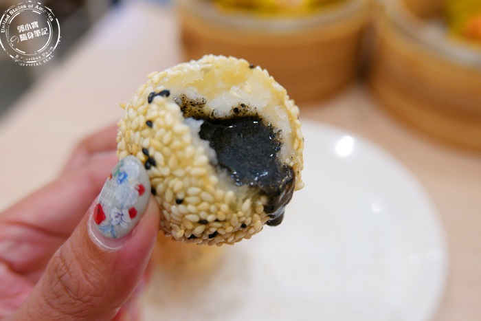 | 圓圓的超可愛的芝麻球,外表滿滿的黑白芝麻,炸過之後超級酥脆的,略略帶硬的口感,可以嚼出米的香甜味,還有濃濃的芝麻香味,裡頭的部分像是麻糬一樣,非常的軟黏,流瀉出來的芝麻餡滋味超棒的,香滑順口,濃濃的芝麻味,甜而不膩,熱熱吃香氣更棒。 |