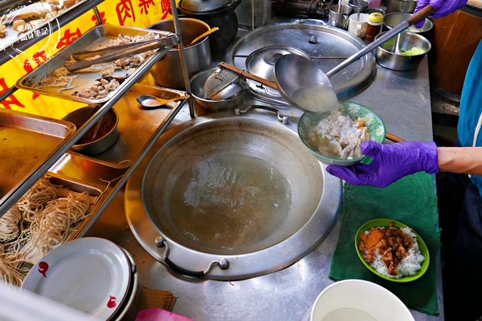 | 看看那快見底的高湯,就能知道他們家有多熱門了吧!看起來東西都賣得快差不多了,太晚來就吃不到囉!相當古早味的麵攤,但是看起來不骯髒也不凌亂,只要一點完餐,老闆就會開始迅速的製作,從點餐到出餐速度可是非常的快呀!直接看好要吃什麼,口頭點餐即可,然後再找位子坐下,等餐點上桌囉! |