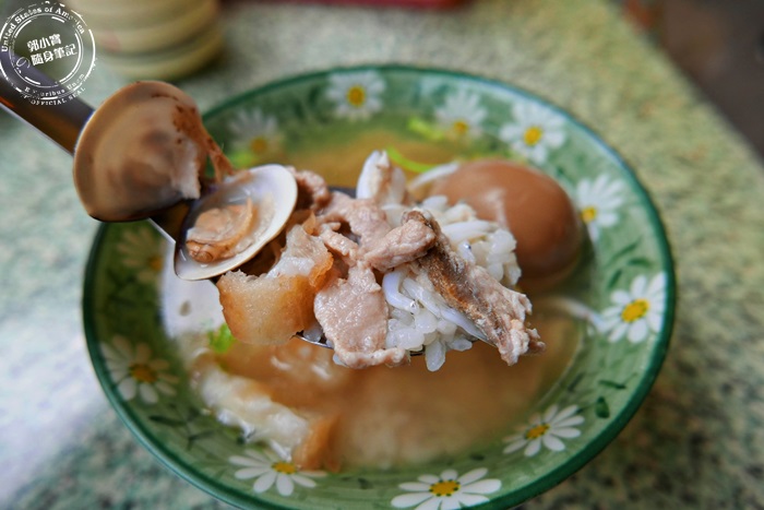 | 想念的古早味,雖然這一碗的份量不大,但是裡面的配料很多,除了有虱目魚肉,還有一點豬肉絲,比較特別的是還有添加了新鮮的吻仔魚,再來是蛤蠣跟油條,蠻豐富的吃起來挺有層次的,以前印象中的虱目魚粥,大多數只有虱目魚而已,並沒有那麼多的配料,他們家雖然虱目魚沒有給的很多,但是其他的配料給的好滿足,非常的新鮮,虱目魚肉質非常的柔軟細緻,豬肉軟嫩有嚼勁,加上吻仔魚跟蛤蠣的提味,白飯吸收了湯汁的鮮甜,熱熱的溫暖在心頭呀!這滋味真棒,些許的芹菜作點綴增加香氣,湯頭的部分算是清爽,再加點胡椒味道會更好,蠻實在的一碗虱目魚粥,不愧是招牌來著。 |