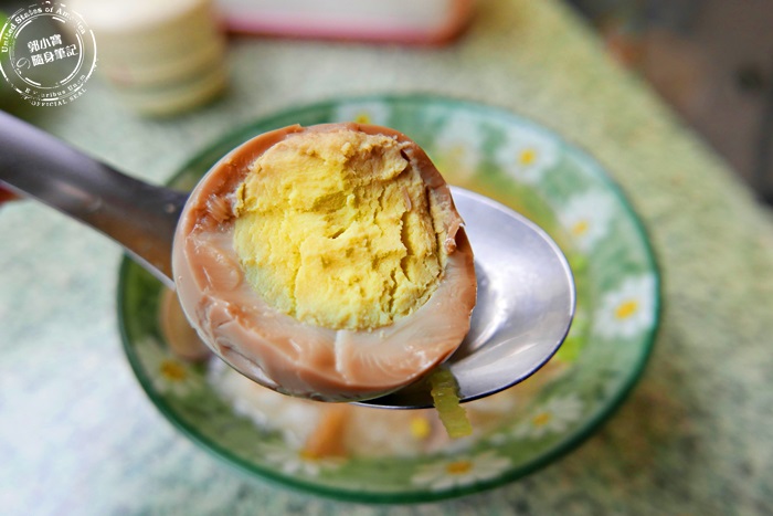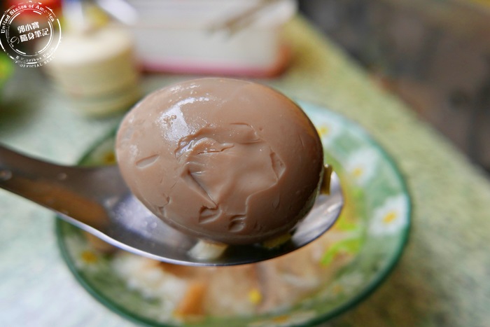 | 另外加了一顆滷蛋,原本以為老闆會放在等等的肉燥飯上面,沒想到很順手的放到虱目魚粥上,原本想說只是一顆滷蛋也沒有什麼特別的,想不到意外的好吃,非常的入味,又大顆又飽滿,軟Q的蛋白還有濃郁的蛋黃都很有味道,跟清淡的虱目魚粥配在一起,挺和諧的。 |