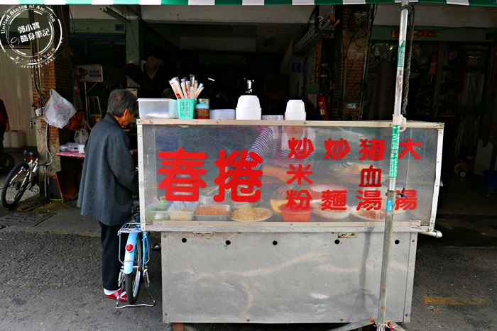 | 除了春捲之外還有炒米粉跟豬血湯,很巧妙的組合,卻是那麼樣的合適,正港台灣味,想要吃的飽就一定要加點這兩樣,其實他們家總共也才四樣餐點而已,炒麵已經賣光了,所以這種很古早的攤販,一定要早點起床才吃得到唷! |
