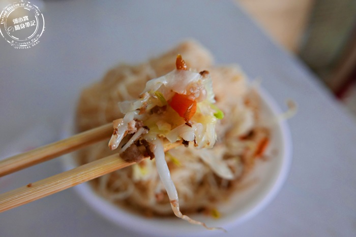 | 大量的豆芽菜跟高麗菜也是炒米粉裡最常見到的,除了蔬菜的新鮮爽脆增加甜味之外,豐富水感也是重點之一,營養滿足還增添口感上的層次,肉燥的香氣輕輕柔柔的,在舌尖上的柔軟,舒服的意猶未盡,一碗炒米粉大大的滿足呀! |