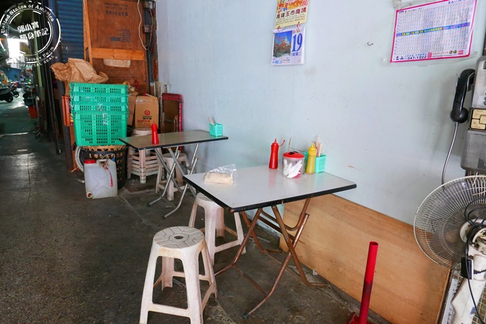 | 市場入口處靠牆位置擺幾張桌椅,就是這裡的內用區啦!雖然環境不怎麼舒適,倒也不凌亂,大家都是外帶居多,艾編就是想要內用這樣才能感受的那懷舊古早的氛圍,而且早上來這裡用餐,有一種說不出來的舒暢感。 |