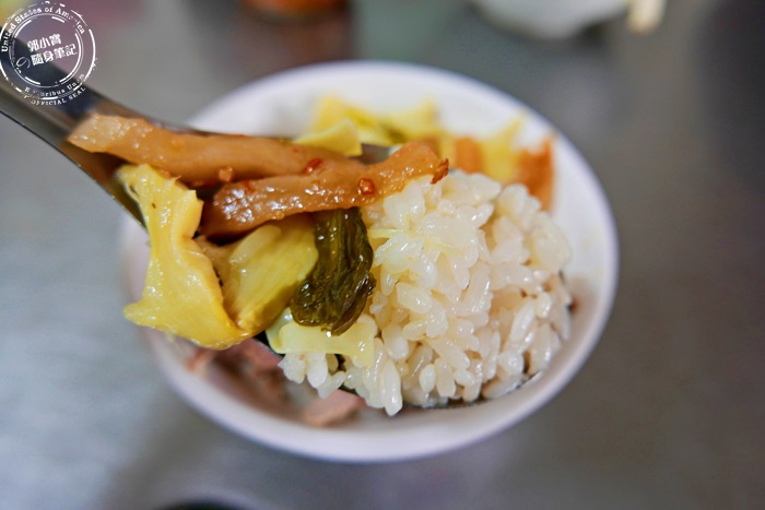 除了最重要的鴨肉,還有一些配菜,筍乾與醃漬辣蘿蔔,多了清脆爽口的層次,豐富的味道,讓鴨肉飯吃起來更滿足,完全不空虛,重點那白飯淋上鴨油跟醬汁,整個油油亮亮的呀!看起來就很美味,吃起來更是好呀!米飯香Q軟硬度適中,加上醬汁跟鴨油,味道香氣十足,濕潤飽口,一吃會上癮的好味道,這鴨肉飯很有水準,艾編超喜歡的,一碗飯一碗冬粉就很滿足了。