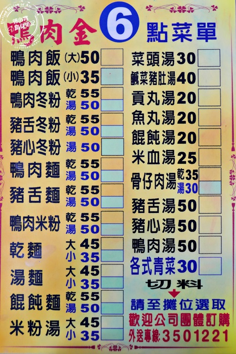 | 菜單就是非常懷舊風味,最主要的當然是鴨肉飯了,,當然豬舌冬粉也是蠻多人的選擇唷!種類蠻多樣的又不會太貴,很適合忙碌的上班族群唷! |