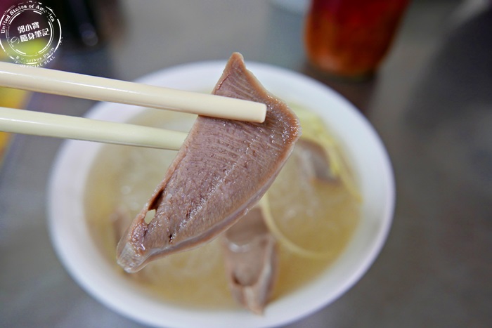 | 豬舌很大很厚實呀!非常新鮮軟嫩,一直以來都覺得豬舌有種迷人的香氣,每每咀嚼,那釋放出來的香氣,還有柔軟脆彈的口感,都讓人吃的好滿足呀!簡單的川燙,原味的呈現就很美味,而且豬舌給蠻多的唷!整碗很超值。 |