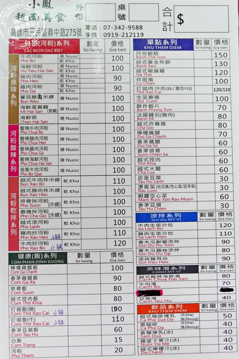 | 小鳳越南美食 (不定休) 電話:07-342 9588 專線:0919 212 119 地址:高雄市三民區鼎中路275號 營業時間:AM11:00 - PM22:00 |