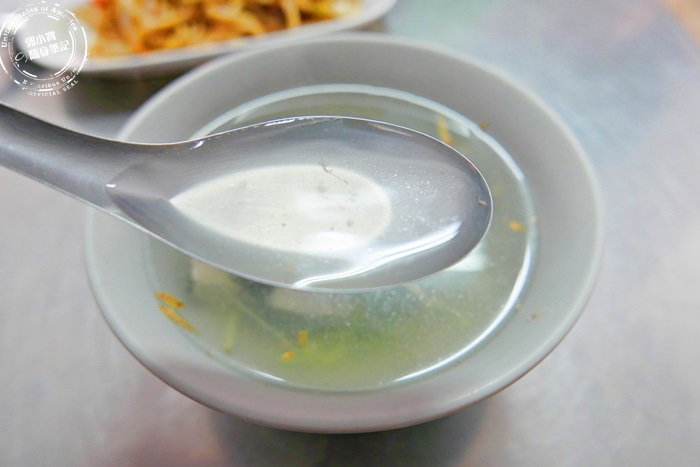 現煮的魚皮湯,魚皮大片還帶點魚肉,簡單的加入薑絲跟蔥花提味,濃濃薑香讓人不禁暖和了起來,魚皮非常的柔軟鮮嫩,份量也多,每次想要補充膠原蛋白的時候都一定會喝碗魚皮湯,女孩兒的駐顏小心機,男生喝也是很棒唷!可以直接吃魚皮,沒有什麼腥味,當然也可以去拿旁邊的調味料沾,滋味都很讚唷!