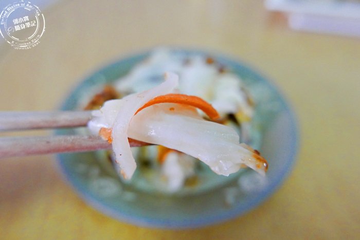 | 可以放上泡菜不計形象的大口咬下,滋味更讚,有了泡菜的清爽脆甜,解膩開胃之餘,配油炸的最對味,多了層次感,整個好滿足,他們家的泡菜有加薑,吃進嘴裡,暖在心裡呀! |