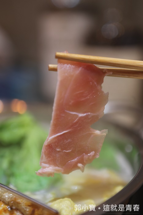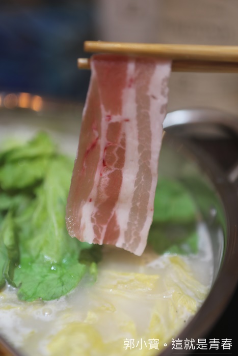 | 五花豬就是要涮酸菜鍋阿,肥嫩嫩的油花跟酸菜鍋真的是天生絕配,油花涮過後吃起來QQ的口感很好以外也不會過膩,帶點酸菜的滋味真的一片接著一片停不下來。 |