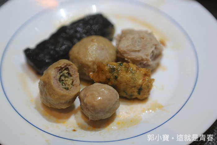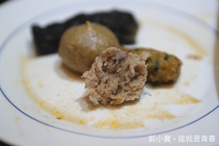 | 總共36顆各式各樣的丸子也太眼花撩亂了,每個丸子的口感都相當彈牙以外,重點裡面包的內餡都非常紮實,墨魚牛軋糖非常特別口感也不錯以外,鴨肉丸的水準也很高,手工芹菜丸我家太妃很愛。 |