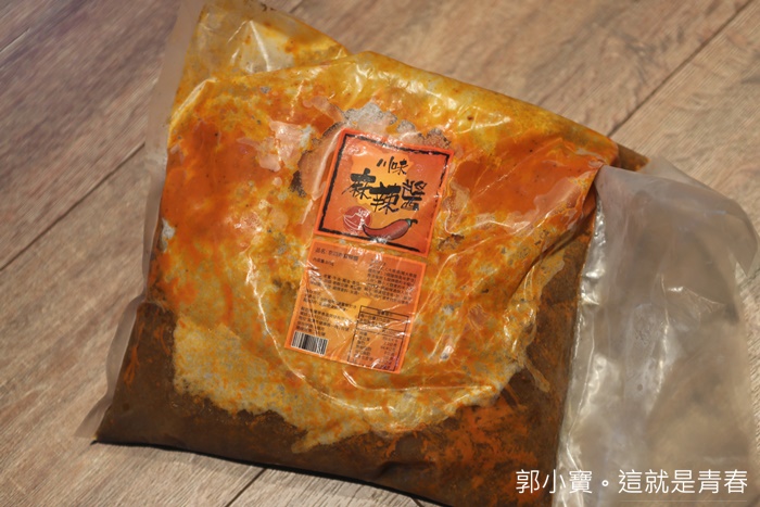 | 紅湯的部分就是麻辣鍋,是已經配好的湯頭,一包3000CC量非常的足夠,我們吃完的時候還有半包的湯頭,所以就冰起來改天還可以用。 |