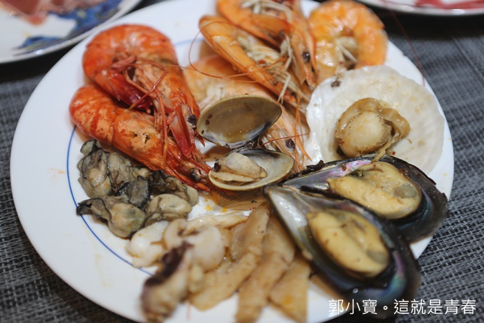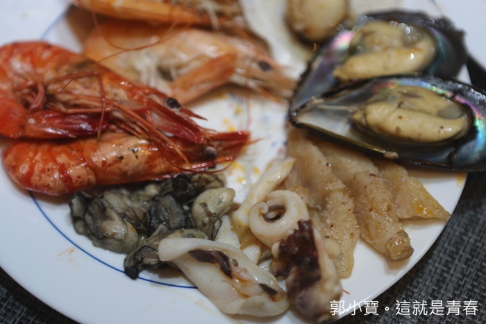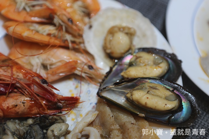 | 海鮮的部分就更恐怖了,當天我們五個人差點蝦子就吃不完了,蝦子給的量真的超多的,除了蝦子以外還有魚肉跟貝類等海鮮商品。 |