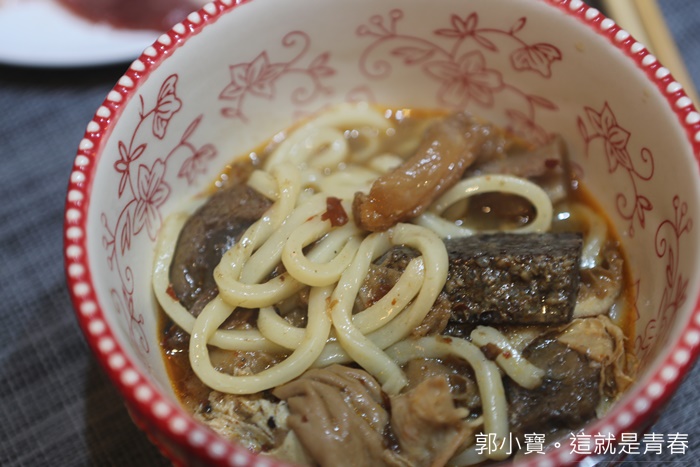 烏龍麵跟泡麵的口感也很好,一定都要放在麻辣鍋裡面烹煮的,烏龍麵口感滑順彈牙,吃起來也不會粉粉的,估溜估溜得很好吃。