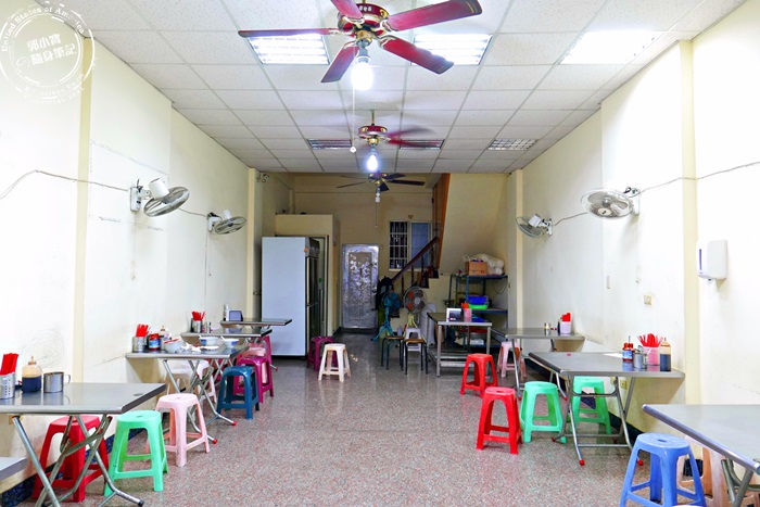 | 看看這內用空間超大超寬敞,因為艾編來的時候並不是用餐時間,所以沒有太多內用的人,很多都已經吃飽離開了,只剩下還來不及收的餐具,跟忙著應付外帶的老闆,內用空間簡簡單單的,就跟一般麵攤沒兩樣,乾淨就行了,反正也沒有其他客人,就隨便找個位子坐囉! |