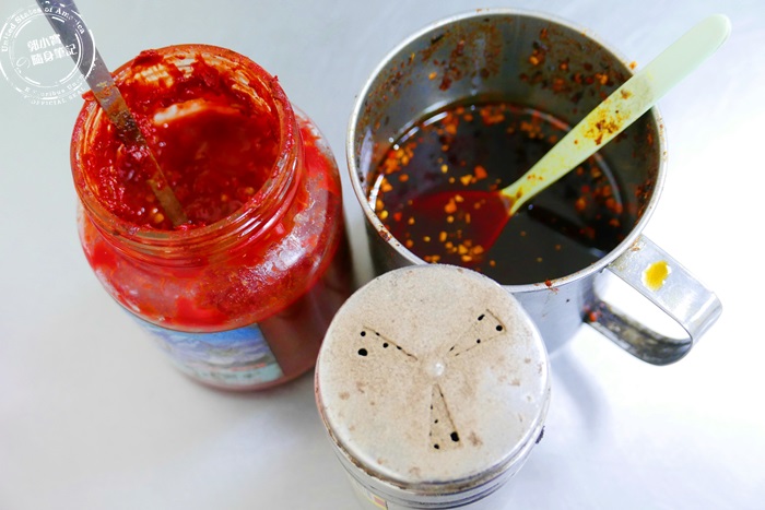 | 桌上都會有附調味料,辣椒油跟辣椒醬吃麵必備的主要醬料,很多人離不開這辣椒香氣呀!大家來的時候可以斟酌的添加,只要不過量,可以提升食材的風味唷!艾編就覺得他們家的湯麵加辣油加胡椒鹽變的超夠味超好吃的,大家下次來可以嘗試看看。 |