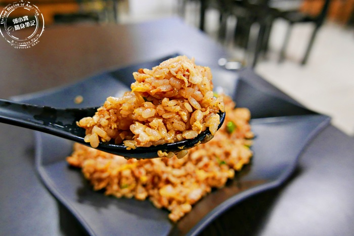| 看到是新品,然後又看到泡菜又是起司,毫不猶豫就點了,但是送上桌吃上一口就後悔了,畢竟這一盤100不便宜呀!原本以為雞肉的部分會是塊狀雞腿肉,殊不知是雞絲,泡菜的部分切的細細碎碎的,整個放下去拌炒,炒的功力一流,所有的飯都染上泡菜的顏色,香辣可口酸甜帶勁,不斷分泌的唾液讓人胃口大開,那熱度那香氣,超舒服的,鹹香辣一次滿足,就是吃口味比較特殊的炒飯,真的沒有很吸引人呀! |