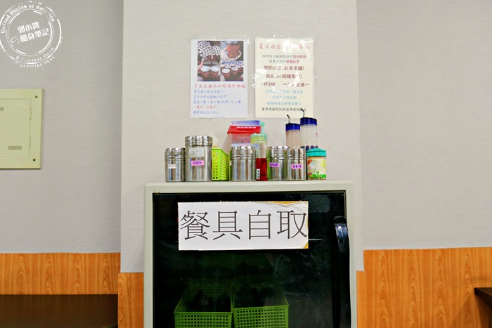 | 這個運用空間一整個非常的巧妙,洪碗機的上方平台拿來放各種調味料,整個應有盡有乾淨整潔,牆上會放一些公告,新品推出或是有自家手工產品販售,提供給客人參考。 |