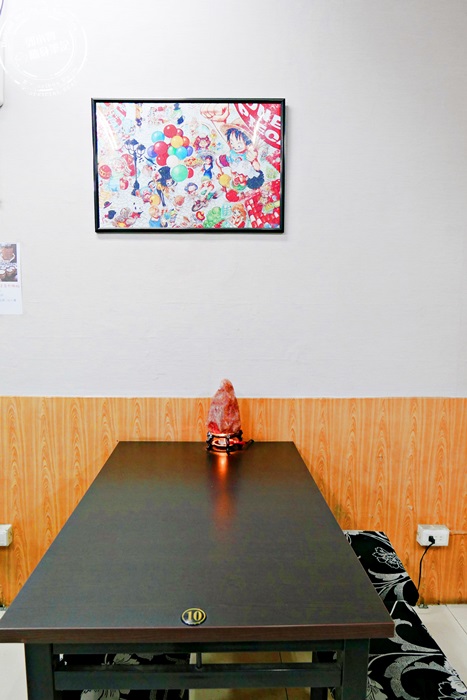 | 牆上都有拼圖的裝飾,唯一這一桌桌上還有放鹽燈,椅子也相當的有質感又舒適,在這一桌用餐感覺都吸收滿滿的正能量,吃個飯身心靈都獲得滿足,也太優了吧! |