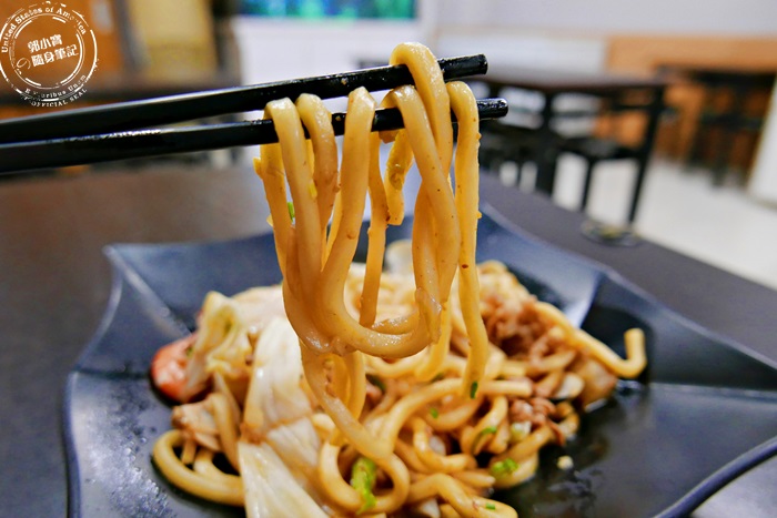 | 軟滑Q彈的烏龍麵,炒至上色味道香氣超厚實,柔軟舒服又飽口,台式炒烏龍的魅力就是能夠緊緊抓住艾編的胃,吃的飽吃個過癮,熗鍋氣息全展現出來,整個鹹香好美味唷! |
