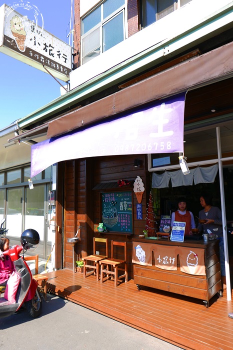 | 看到人多的地方就是他們家,裝潢的有點日式文青風,都是現在年輕人最流行的元素,從一開店就人潮不間斷,看來現在大家的美食雷達都很靈敏,其實他們家就騎樓延伸馬路的範圍,拿來做小廚房跟內用區,小小的空間規劃成製作甜點的小攤子,後方是黏土教室,所以他們家其實是沒有什麼內用空間的,就是稍微擺放椅子,讓來蓮池潭參觀的遊客,可以吃個甜品稍作休息一下。 |