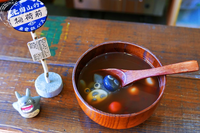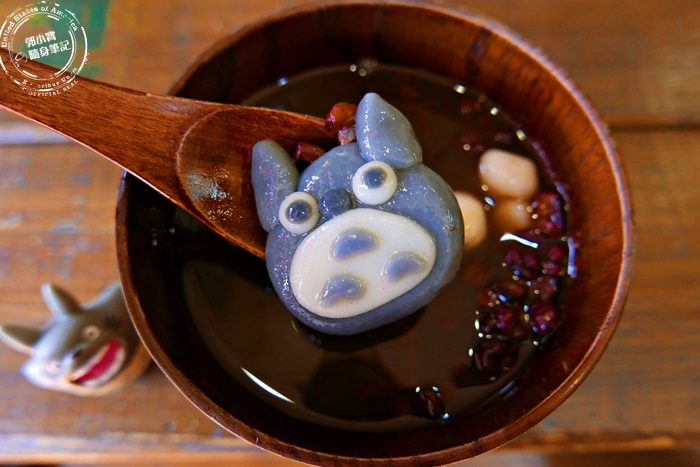 | 原本上前點餐的時候還被告知,現在內用的話只能用外帶的紙碗裝喔!天啊!艾編就是要來拍美美的照片,怎麼可以用紙碗來煞風景,所幸苦苦哀求下,還是等到一個原本內用的木碗,其實是他們內用的碗沒有太充足,所以變成一下子來太多人內用的話,就會有供不應求的情況產生,不過如果願意等,都不成問題的,看看這等待是不是很值得,紅豆湯一整個也太吸睛太可愛了,在放上龍貓跟公車站牌的擺飾,一碗簡單的紅豆湯瞬間變的超療癒呀! |