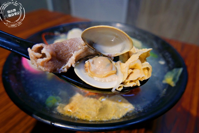 | 一種海陸大餐的概念,還有豬肉片喔!雖然只有一片,但是艾編原本設定龍蝦鍋燒就是海鮮為主,所以突然看到豬肉,整個受驚訝!也太好了吧!還有蛤蠣增加鮮甜滋味,新鮮飽滿,豆皮吸收滿滿湯汁,實在是很滿足唷! |