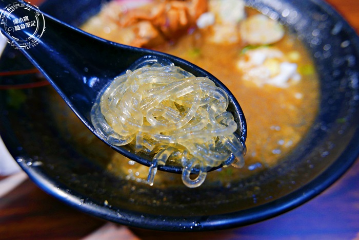 | 鍋燒的部分有意麵、雞絲、冬粉可以選擇,如果要加麵就加$10,男生的話可以多加,會吃的比較飽,艾編選的是冬粉,也把湯汁加了沙茶進去,冬粉因此吸收了湯汁,也染了顏色,滑順軟彈的口感,香氣十足,滑溜的一下下就進肚子裡,所有的精華都在這冬粉裡,高湯的自然鮮甜,沙茶的濃郁香醇,在嘴裡的韻味讓人滿意又飽足! |