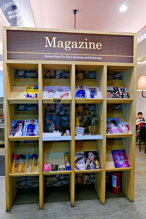 | 一進門就是一大面的雜誌牆吸引目光,放滿雜誌還有開水供客人飲用,全自助式的,很有設計感的置物櫃,讓人一進門就有很大的視覺衝擊。 |