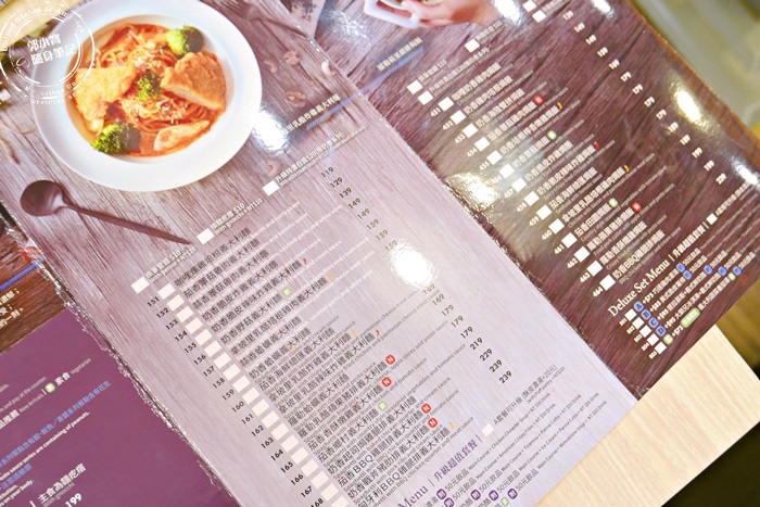 | 他們家的菜色實在是很多樣化,艾編挑個重點讓大家參考參考,他們家的餐點最貴的也才$249,餐點內容有鍋品、義大利麵、焗烤、炸物、兒童餐、比薩、吐司盒子、下午茶、飲品,想得到的通通有,沒有加一成服務費,其實還蠻划算的,也有很多爸爸媽媽帶著小孩子來用餐唷!有親子餐廳的感覺,能吃好吃飽又有犒賞自己與家人的感覺。 |