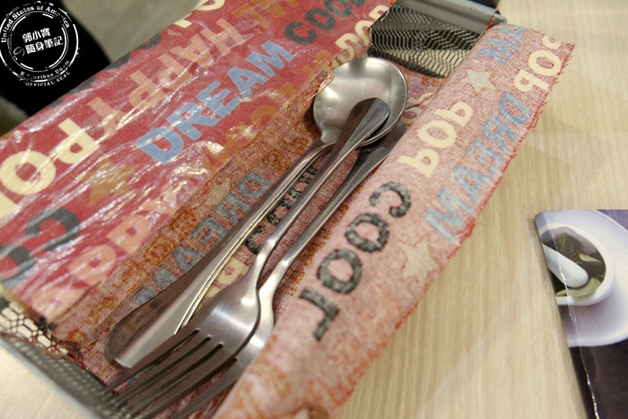 | 桌上都有附餐具,叉子湯匙必備,但是沒有放刀子,因為怕放在桌上會危險,很容易被小朋友拿到,如果點的餐點需要用到刀子,送餐上桌的時候才會附上,這樣大人們也能看管,絕不會讓小孩子危險的,店家設想的很周到唷! |