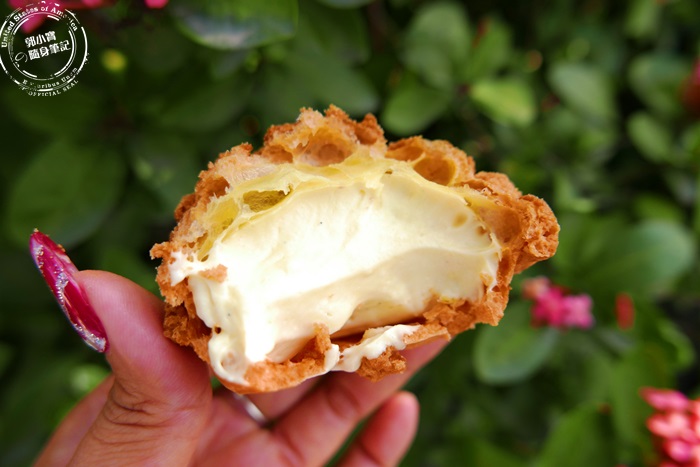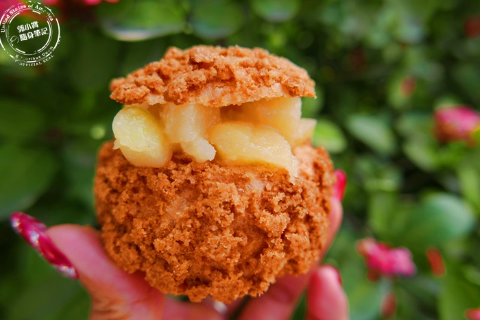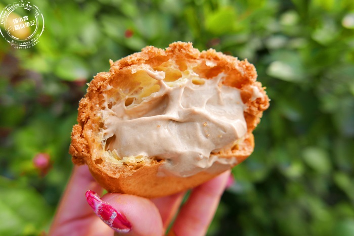 | 泡芙的大小艾編覺得適中,剛好是女孩兒甜點胃裡需要的份量,堅挺酥脆的外衣,沉甸甸的實在感,撲鼻的香甜氣息,從裡到外散發出迷人的魅力,原味的部分是可以看得到泡芙的完整性,只要從底部填充內餡進去,快快來吃吃看這麼療癒的森林系泡芙吧! |