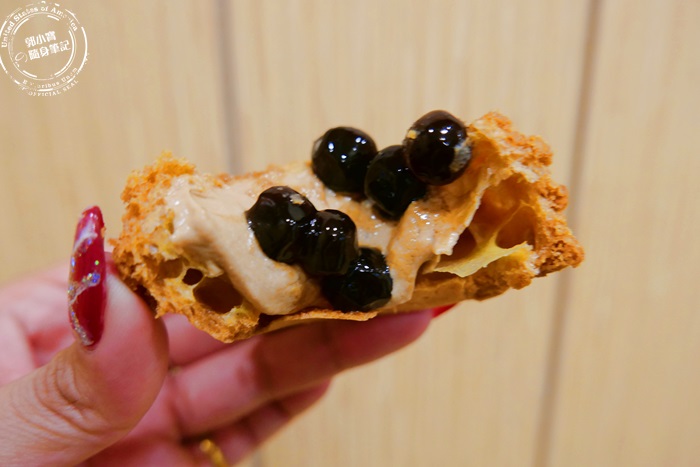 | 珍珠奶茶的口味真的超特別,裡頭的內餡真的有奶茶的味道,茶香跟奶味的舒服,加上軟Q的珍珠,黑糖的香氣甜而不膩,加上酥脆的外衣,口感豐富有層次,如果覺得來一杯珍奶太多太膩口,那不如來這珍奶口味的泡芙,可以滿足想要喝珍珠奶茶的慾望,又可以滿足甜點胃,視覺上也大大的滿足,簡簡單單的療癒系泡芙有著讓人幸福的感動,就是他們家會造成天天人潮爆滿的原因,各位高雄的朋友們有吃過嗎?如果還沒跟風,下次不妨安排一下,抓好時間來場甜點之旅吧! |
