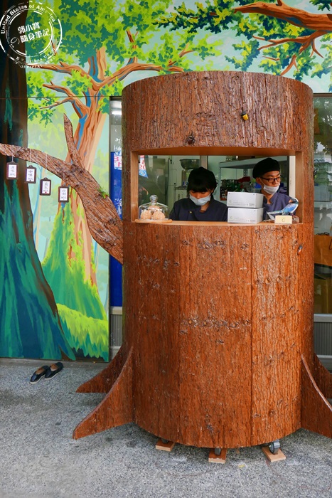 | 泡芙填餡跟包裝的地方,是樹的造型,非常的吸睛且特別,在這裡點完餐就可以去旁邊付款取貨,其實速度還蠻快的,一張號碼牌最多可以買四個,艾編有發覺有人一次拿很多號碼牌,所以排在你前面的人如果是拿很多號碼牌的可能就要等比較久。 |