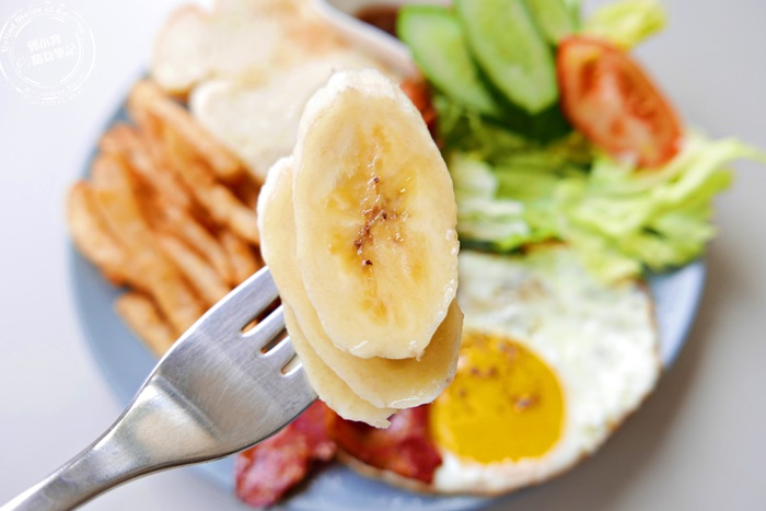 | 既然他們家的早午餐拼盤這麼豐盛那麼水果當然也一定要出現的,水果的部分店家是給香蕉,這個香蕉看起來超漂亮,新鮮香甜還有帶點Q勁,軟Q好吃唷!香蕉補充滿滿的能量,艾編最喜歡了! |