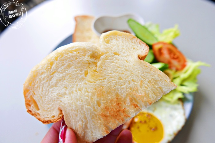| 吐司的部分就比較普通了點,因為沒有奶油可以抹上去所以有點小失落,烤的酥脆帶點焦香的吐司,鬆鬆軟軟的很香很好吃,不會乾到有種噎著的感覺,細細品嚐還可以感受到麵香跟微微的甜味,還有那麵的筋性。 |