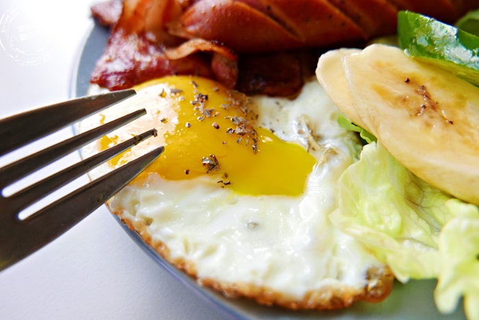 | 半熟的太陽蛋,就是要感受蛋黃的滑順濃郁感,那濃厚的味道拿來沾培根、香腸、吐司,蛋黃香醇滋味,順滑且在嘴裡濕潤,加上邊邊那微焦Q脆的口感,又軟又彈,蛋香十足,新鮮好吃唷!超愛這種半熟蛋,整天的活力就從早餐開始。 |